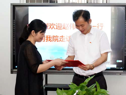 7月1日上午10点,公司党委书记赵伟来到伟德国际bevictor1946,向伟德国际bevictor1946的全体党员教师致以节日的问候,并为马院获评九江市、学校优秀共产党员的教师和优秀党支部颁发了证书和奖牌,并与优秀党员教师和优秀党务工作者进行了座谈。